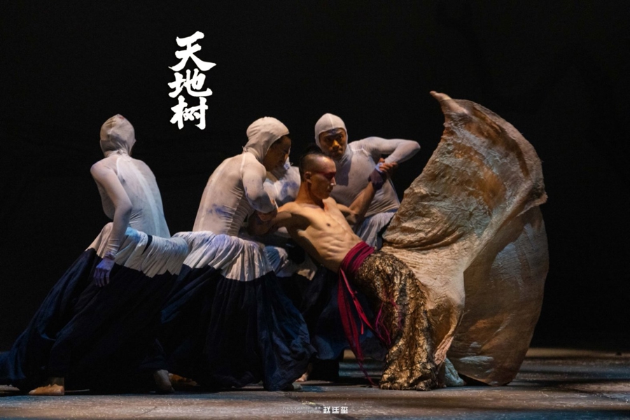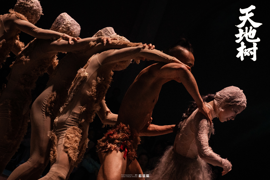 《天地树》全剧分为四个章节,层层递进,构建出一部完整的生命史诗。前三章中,树根代表“地”,讲述生命从泥土中生长的原始力量;树干代表“人”,讲述人与人的关系、爱情与守护;树冠代表“天”,讲述神性与祭祀。第四章“天地树”,树根、树干、树冠最终合为一体,形成“顶天立地”的巨树形象。这不仅是对树的生命礼赞,更象征着人与自然、天地合一的终极境界。