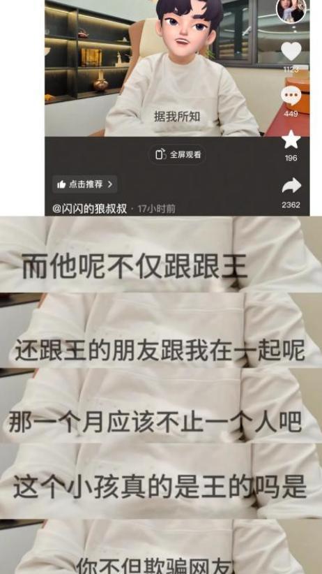 但暗示还有更大的猛料没放出来,而最让人起疑的是,苏易陆还在视频里质疑,女儿闪闪的生父到底是不是王思聪?